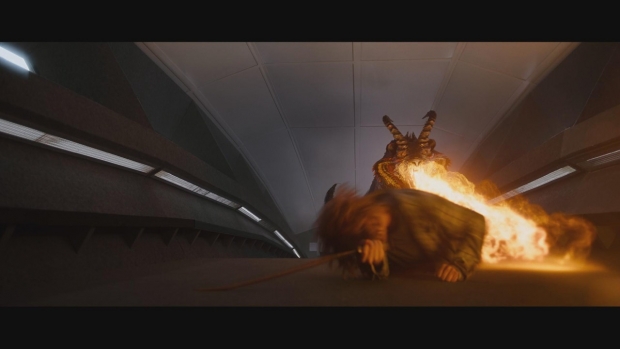 I always like to talk about the chimera in Episode 3, because that's just one of my favorite monsters – a mashup of a lioness and a goat and a snake. The success of that really comes down to the fact that we were able to take an entire set and just paint it all black and use flamethrowers. The special effects guys came in and gave us proper elements, because it's a fire-breathing creature.