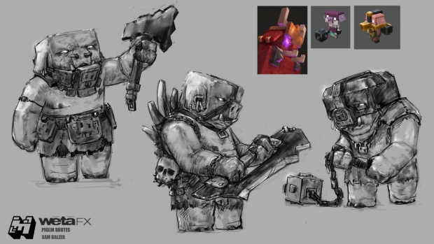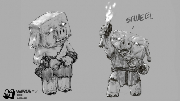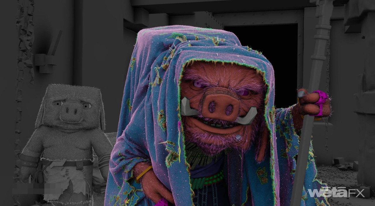 The studio’s Art Department, working closely with Hess, co-created the look and feel of all digital characters in the film. For Malgosha’s henchmen, the Piglins, Wētā designed and created 12 different variants, all with individual characteristics and personalities. They also designed sheep, bees, pandas, zombies, skeletons, and lovable wolf Dennis. Many of these characters were provided to other vendors for their work on the film.
