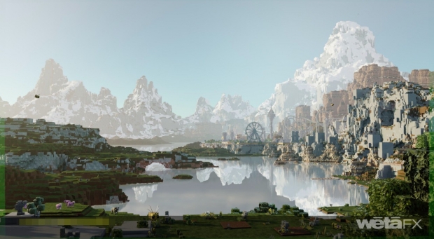 But the shot count merely scratches the surface of the extensive work the studio performed. Wētā led the design and creation of The Overworld, 64 unique terrains spanning deserts, lush forests, oceans, and mountain ranges, all combined into one continuous environment, assets that were also shared with Digital Domain for their work on the 3rd act battle. Wētā also handled extensive work on the lava-filled hellscape of The Nether that involved Unreal Engine for early representations used in previs, scene scouting, and onset during principal photography, before refining the environment during post-production. They also dressed The Nether with lava, fire, and torches, along with atmospherics and particulate like smoke, ash, and embers.