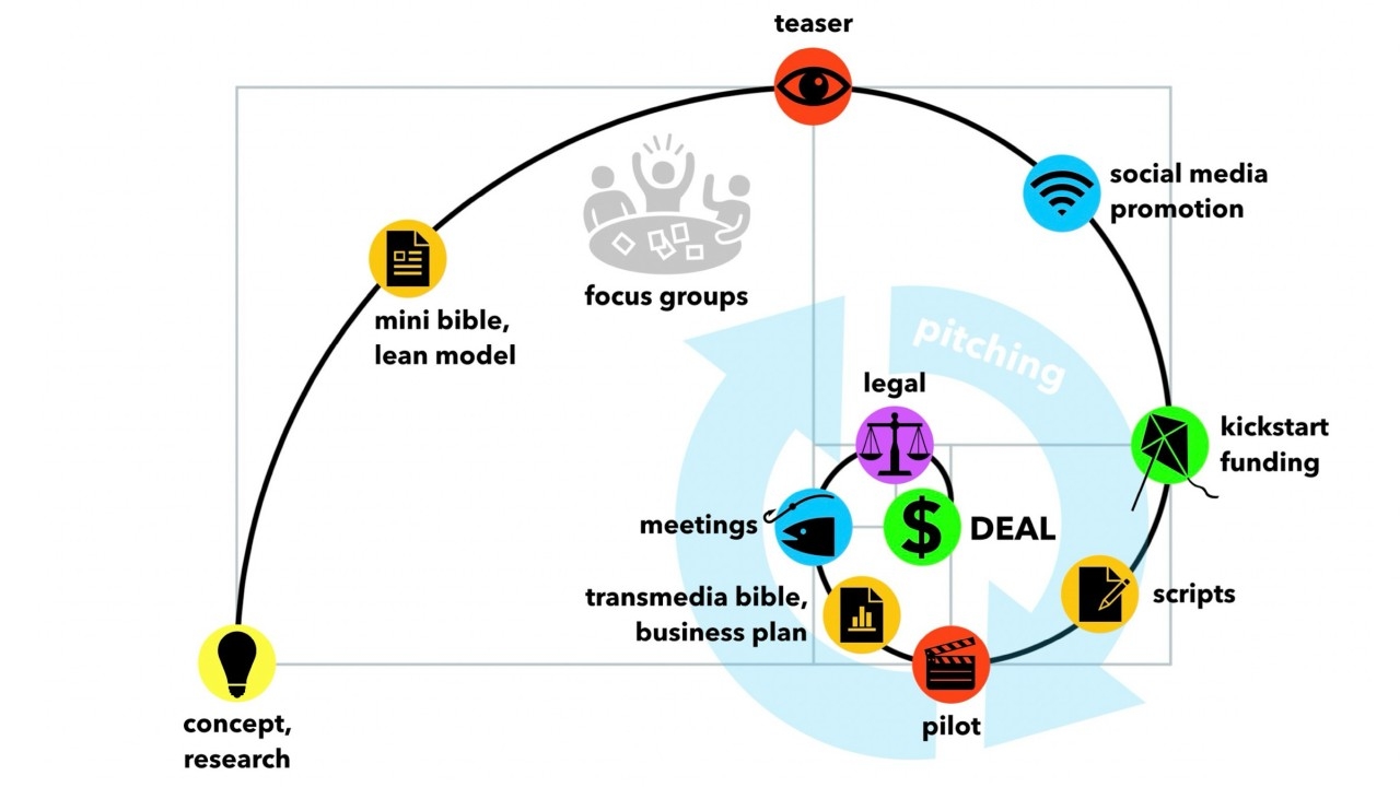 - Start lean: Begin with a “mini bible”: basic transmedia approach and lean business plan. This binary combination represents the IP as startup philosophy — validating the creative and market potential early without large budgets.