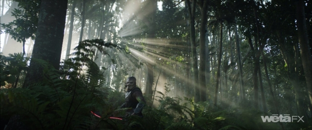 One of the highlights of the film is the seemingly endless array of lethal vegetation, in particular, the vicious elephant tree vines featured in the opening scene. “That was the first sequence we worked on, including postvis for the choreography,” states Rapley. “Trying to find the behavioral language of these vines was quite tricky. But then also how they moved as a pack. There was a certain rhythm to the sequence. They attacked and then there was a standoff when they all started to surround Dek like wolves and it developed from there. It is Dek’s first interaction with the planet, so they had to be aggressive and introduce you to ‘Hey, we're not going to mess around here. These things are going to attack you.’ But Dek is slicing them down the middle and there's sparks and embers going everywhere. The choreography was massively challenging, trying to find the right balance of when and where the vines attack and integrating them into New Zealand footage.”